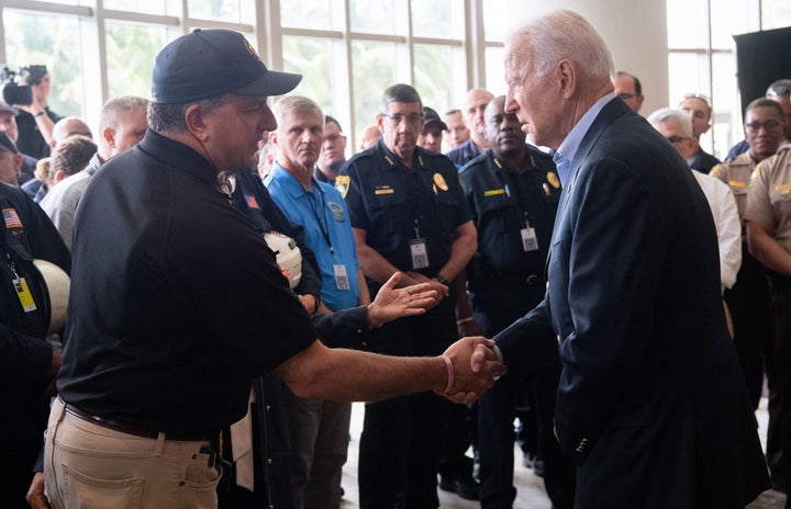Biden then met with first responders who have worked around the clock on a rescue effort that has stretched into its second week amid oppressive heat and humidity and frequent summer storms.